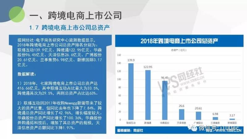 跨境电商上市公司年度榜单:截至2018年12月31日,7家跨境电商上市公司总市值达406.1亿元,平均市值58亿元,股价年均跌幅达46.2%。