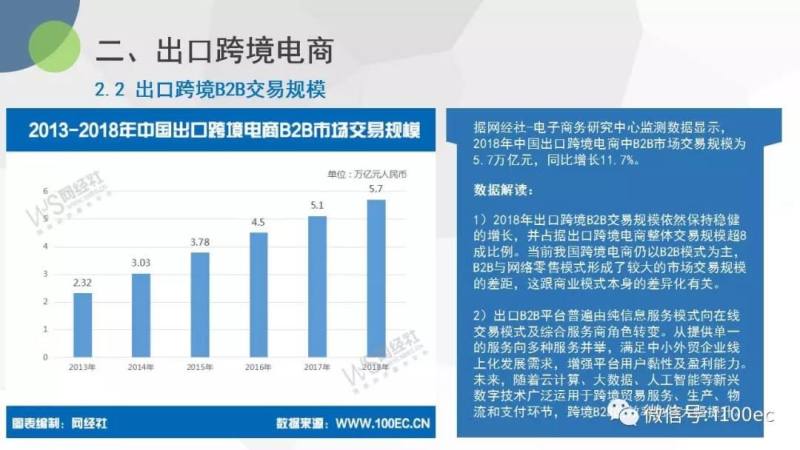 出口跨境电商交易规模:2018年中国出口跨境电商交易规模为7.1万亿元,同比增长12.7%。