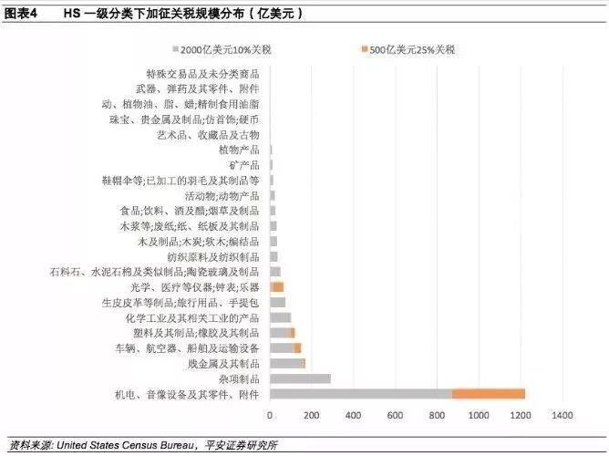 2000亿美元商品于2018年9月24日开始加征10%的关税,并计划在2019年1月1日起上升至25%。
