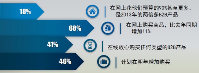 有18%的B2B买家在网上花他们预算的90%甚至更多,是2013年的两倍多B2B产品;