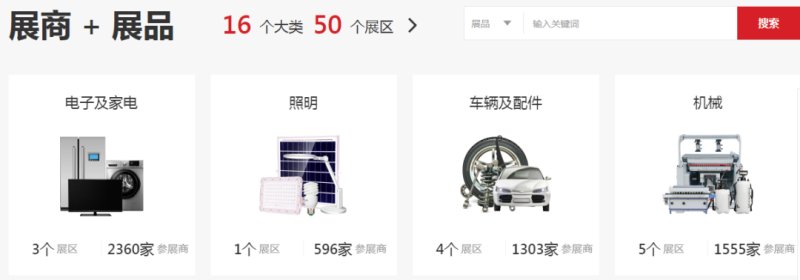 广交会官网设有展商展品、新闻与活动、全球供采对接、大会服务、跨境电商专区五大板块内容。